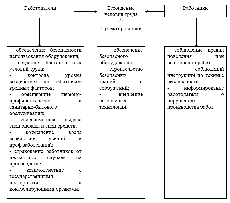 На рис. 1 приведен перечень обязанностей работников и работодателей по соблюдению безопасных условия труда.