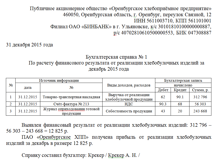 Бухгалтерская справка образец и примеры заполнения