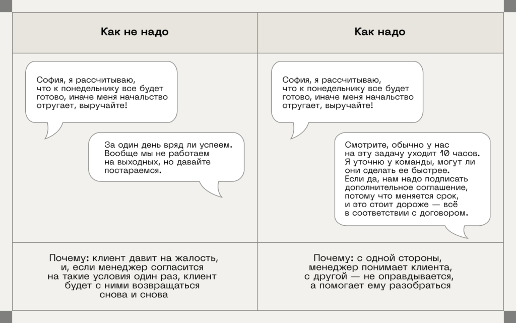 Вы: «У меня полностью расписан весь месяц, поэтому я не смогу вам помочь».