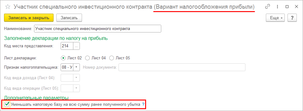 В карточку элемента списка Варианты налогообложения прибыли добавлен признак Уменьшать налоговую базу на всю сумму ранее полученного убытка.