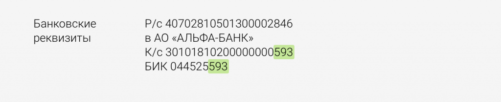 Цифры в к/с и БИК совпадают — реквизиты указали без ошибок