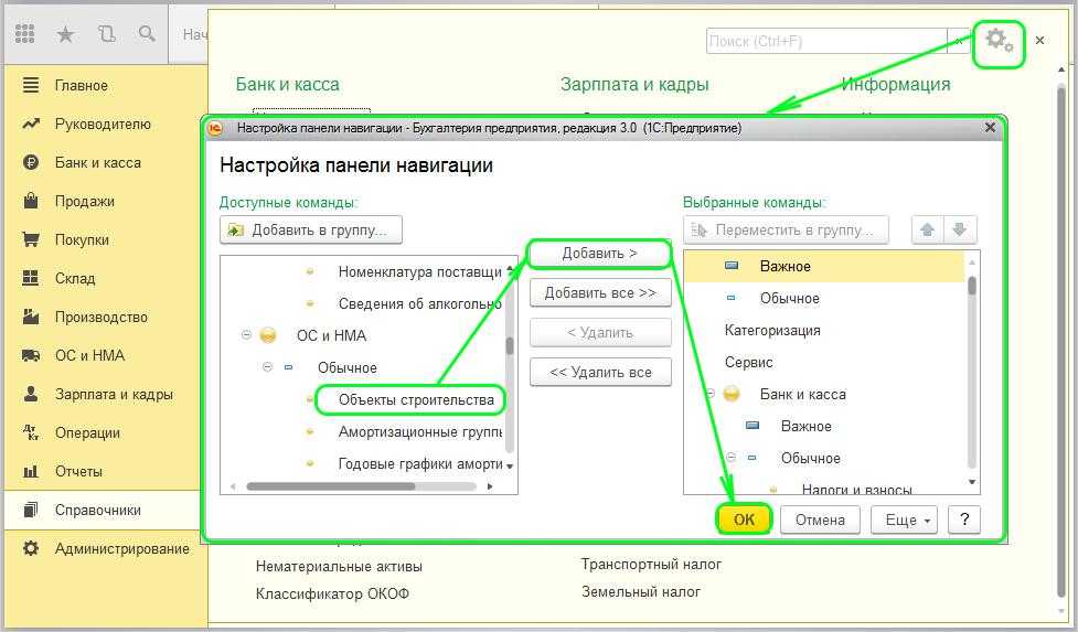 Все данные вписывают в графы. Можно пользоваться «Справочником». В него можно зайти из документа поступления. Делается это просто: достаточно нажать на «Добавить», тогда в таблице высветится графа, в колонке «Объект строительства» нужно нажать на «Показать все». Тогда откроется соответствующий справочник, в котором можно начинать создание карты объекта. Чтобы было легче понять это, можно воспользоваться примером модернизации ОС в 1С 8.3, приведенным ниже.