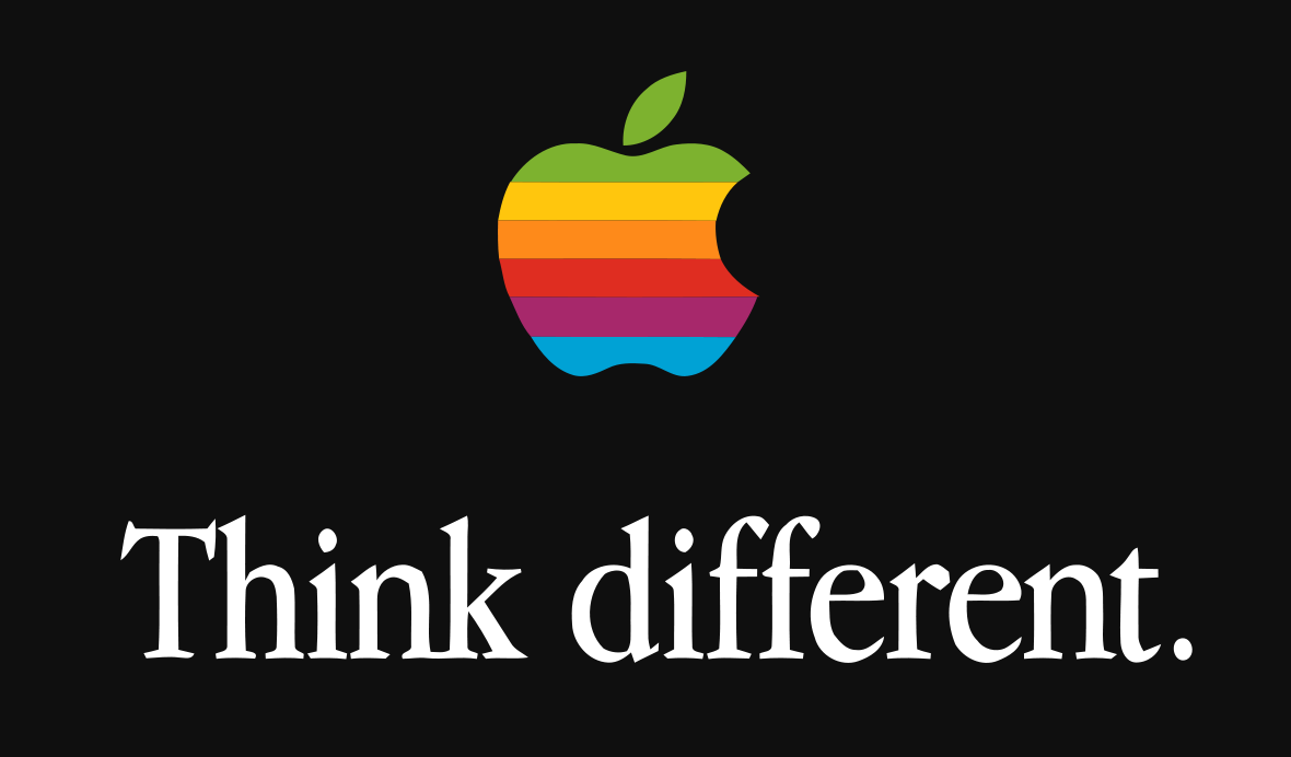 Слоган, коÑоÑÑй Apple иÑполÑзовала Ñ 1997 до 2002 года, пеÑеводиÑÑÑ ÐºÐ°Ðº «ÐÑмай инаÑе». Ðн поÑвилÑÑ Ð¿Ð¾Ñле Ñого, как СÑив ÐÐ¶Ð¾Ð±Ñ Ð²ÐµÑнÑлÑÑ Ð² ÐºÐ¾Ð¼Ð¿Ð°Ð½Ð¸Ñ Ð¿Ð¾Ñле деÑÑÑилеÑнего оÑÑÑÑÑÑвиÑ, когда Apple бÑла на гÑани банкÑоÑÑÑва. ÐÑи помоÑи агенÑÑÑва TBWA\Chiat\Day бÑла ÑазÑабоÑана конÑепÑÐ¸Ñ Â«Think Different». ÐÑиÑем ÐÐ¶Ð¾Ð±Ñ Ð½Ð°ÑÑоÑл именно на Ñаком напиÑании, оÑказавÑиÑÑ Ð¾Ñ Ð±Ð¾Ð»ÐµÐµ пÑавилÑного Ñ ÑоÑки зÑÐµÐ½Ð¸Ñ Ð³ÑаммаÑики «Think Differently».