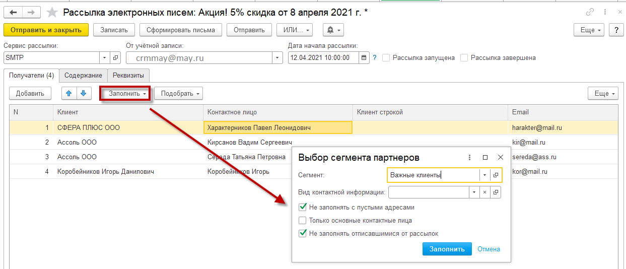При рассылке электронных писем о какой-либо акции или мероприятии, если мы хотим уведомить определенную группу клиентов: