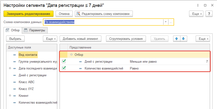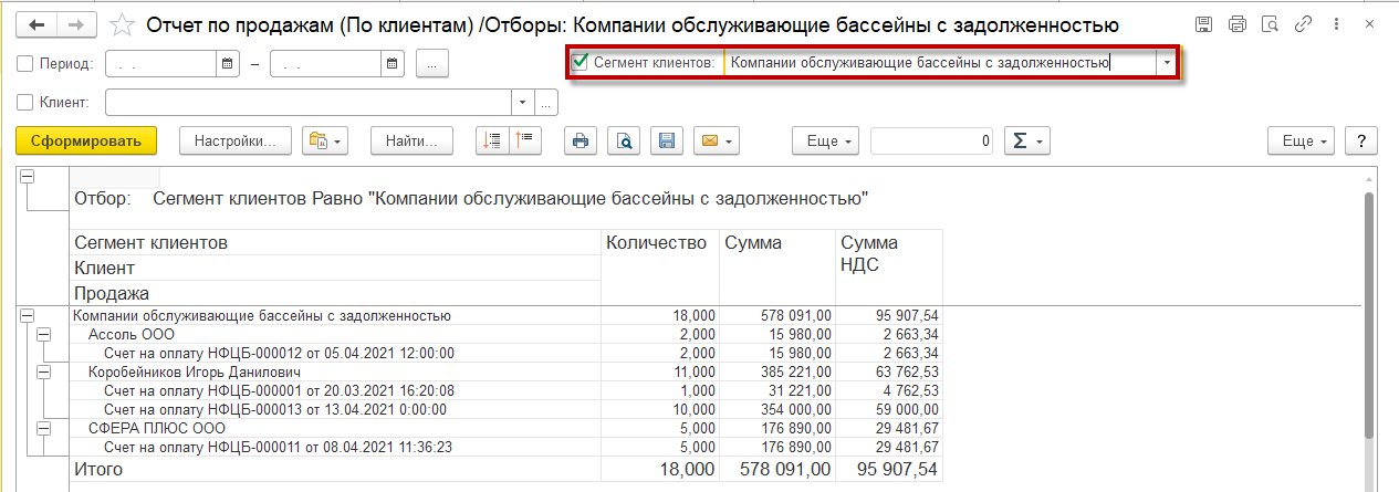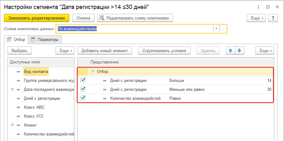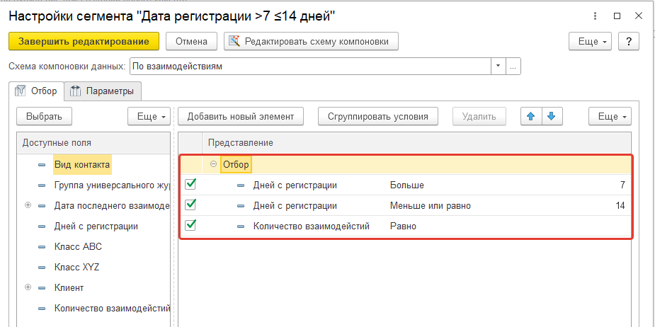Для этого создадим три сегмента клиентов со следующими настройками: