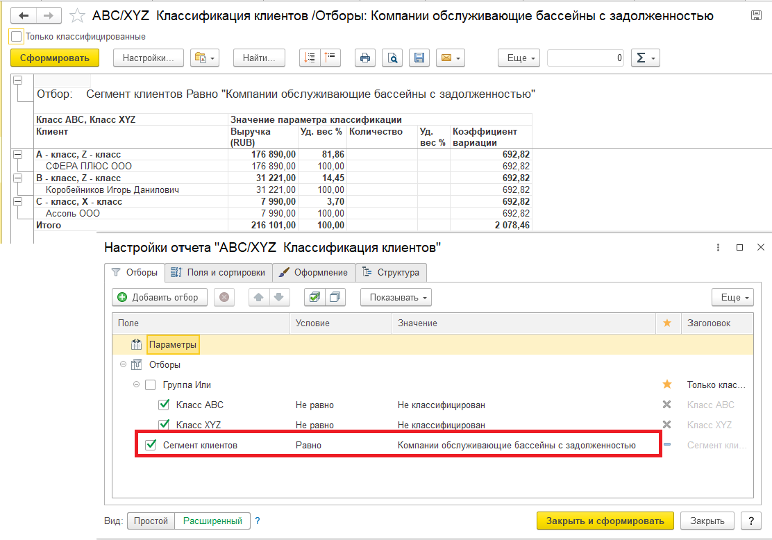 Или просмотрим результаты ABC-XYZ анализа по данному сегменту: