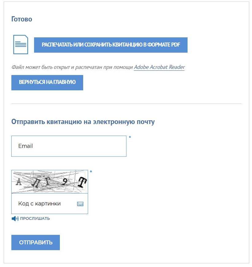 формате. Отправить квитанцию можно и на свою электронную почту.