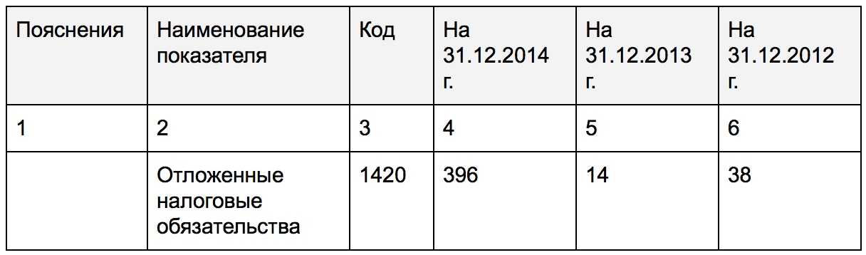 Пример формирования строки 1420 “Отложенные налоговые обязательства”