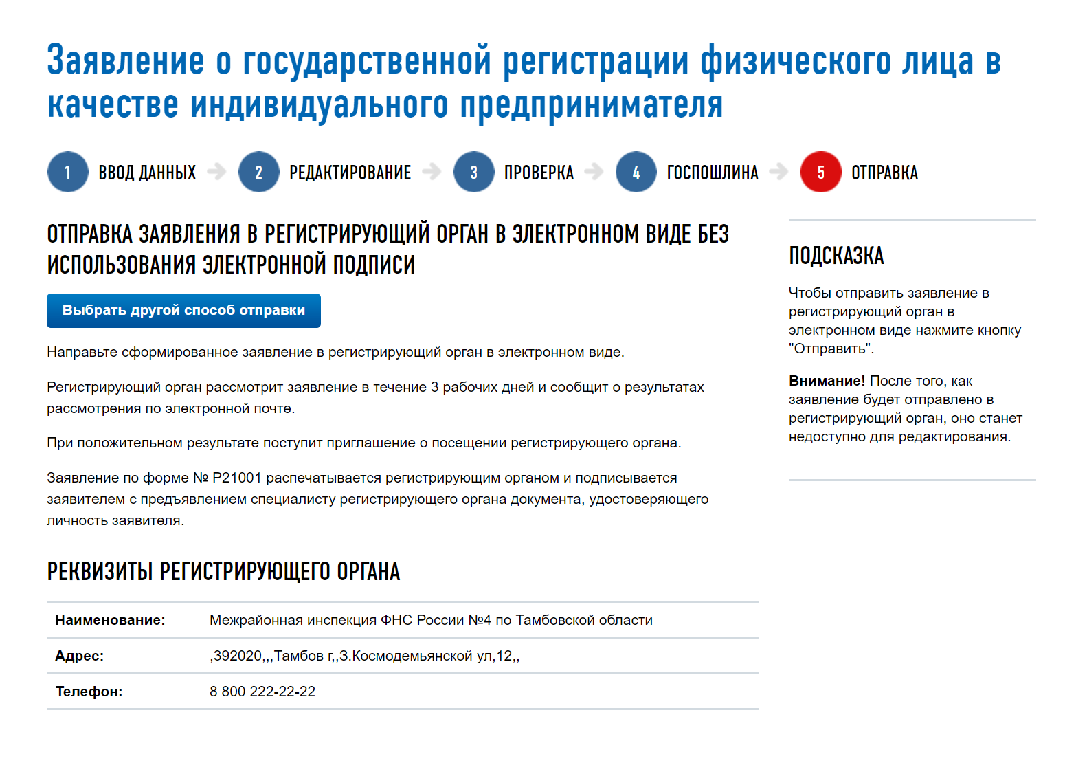 А теперь о том, как открыть ИП вовсе без привлечения посредников. Если прописка в другом городе, зарегистрироваться можно удаленно — через интернет.