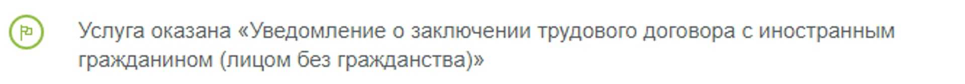 Статус «Услуга оказана» -то, что нам и нужно. Это и есть заветная отбивка. Приходят они в основном ночью, так что на утро после подачи заявления, если МВД в тот день работало, мы уже можем увидеть его в личном кабинете.