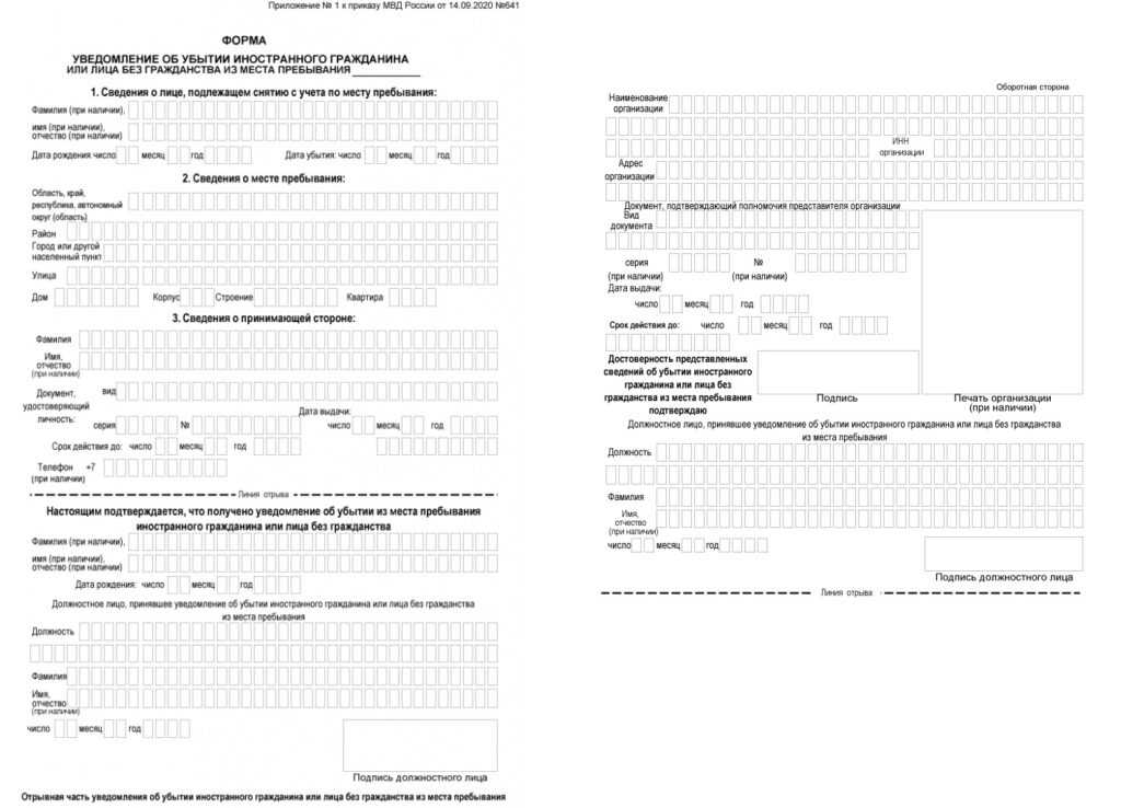1. Оформление уведомления об убытии иностранного гражданина или лица без гражданства из места пребывания производится принимающей стороной .