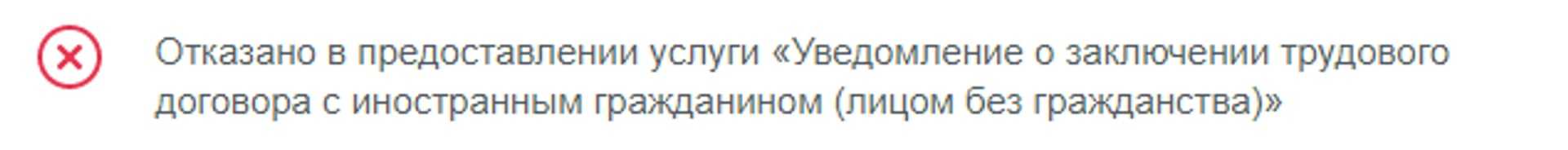 Статус «Отказано в предоставлении услуги» — скорее всего это запрет от МВД по типу «Запрет на въезд». Этот статус означает, что вы не сможете сотрудничать с таким исполнителем.