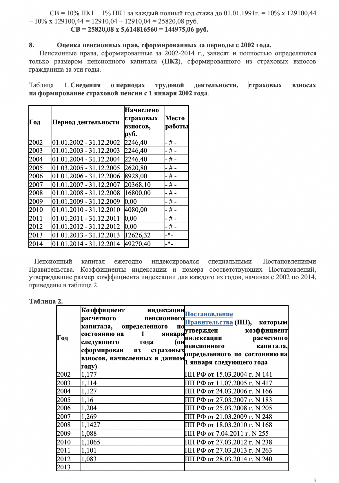 | 2.2 | Анализ сумм страховых взносов на страховую часть, учтенных в Расчетном пенсионном капитале за периоды работы с 01. 01. 2002 г. по 31. 12. 2014 г. |