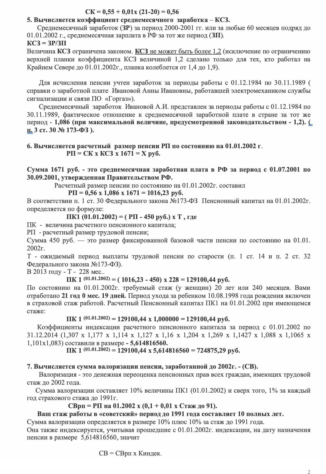 Вторая страница примера письменного заключения по проверке размера пенсии.