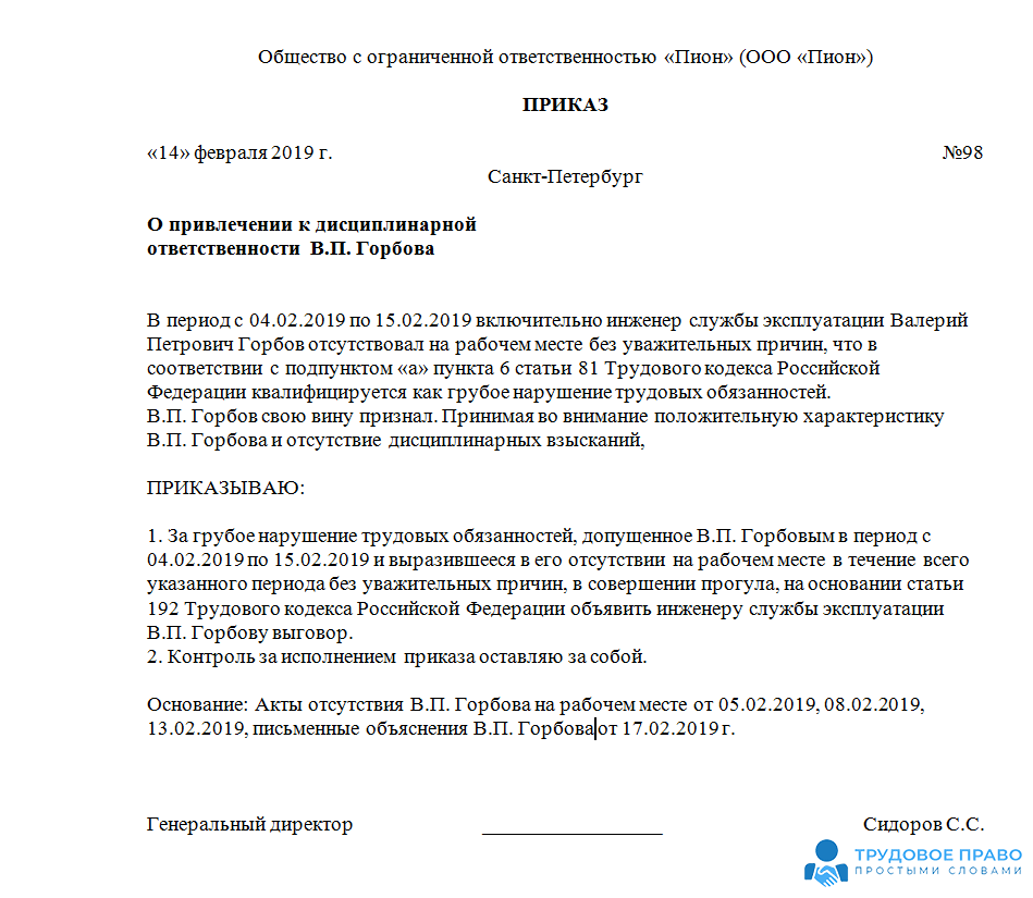 Шаг 7: оформляем приказ для привлечения к дисциплинарной ответственности