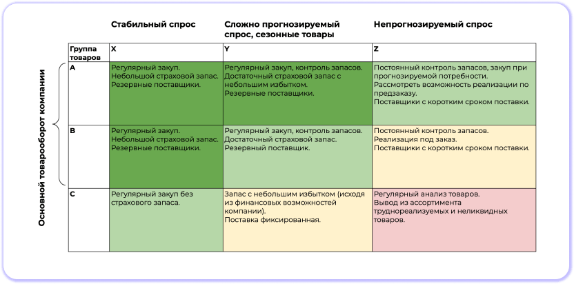 Ну и чтобы минимизировать вероятность появления неликвидного товара, регулярно проводите ABC и XYZ-анализ и корректируйте товарную матрицу.