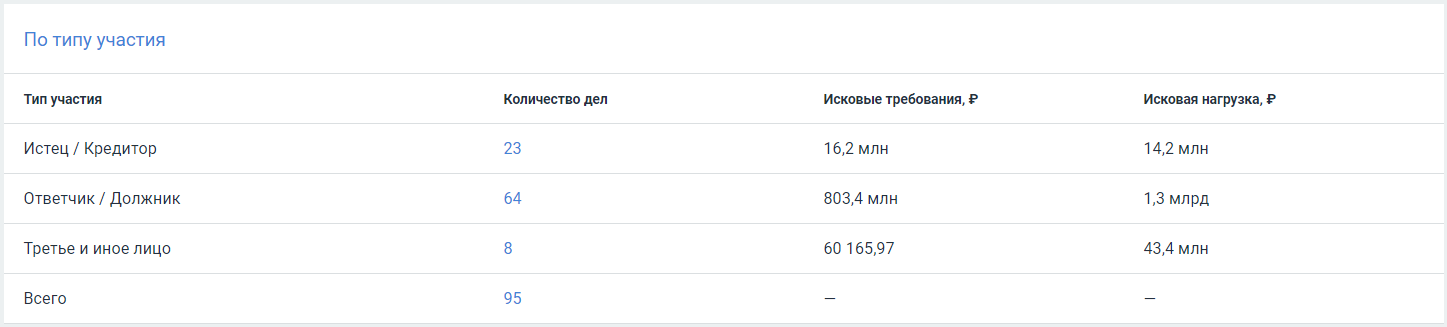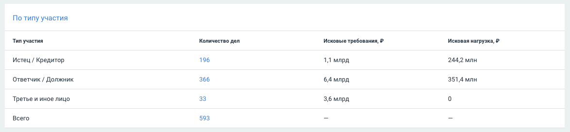 Исковая нагрузка покажет, в роли кого организация выступает чаще всего в судебных делах: истец, ответчик или третье лицо.