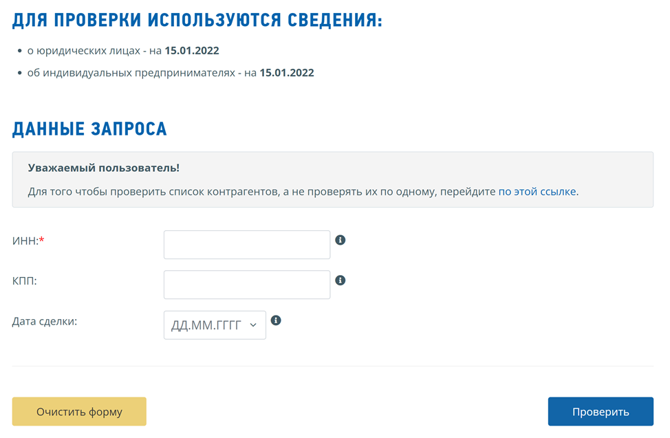 Проверка контрагента на сайте ФНС nalog.ru
