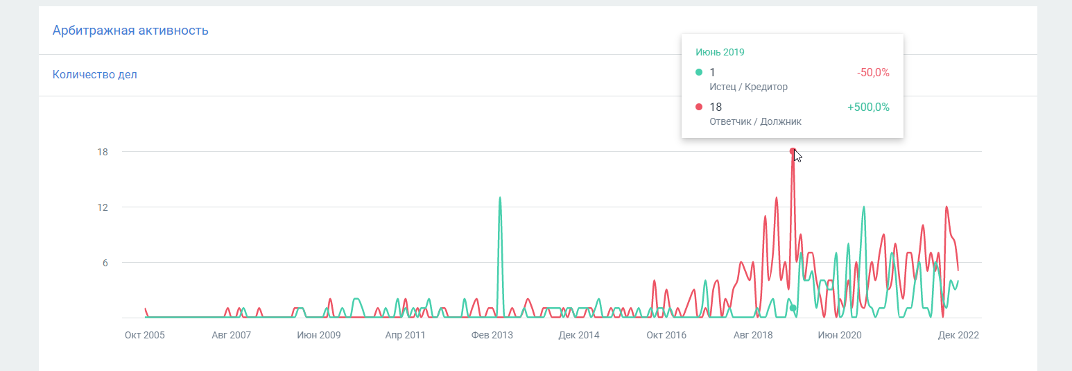 График арбитражной активности позволит оценить состояние компании в динамике и спрогнозировать банкротство задолго до подачи заявления.