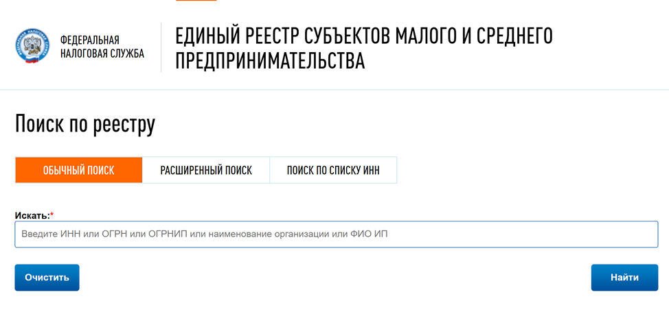 Малый и средний бизнес. Также бесплатно проверить компанию можно в базе субъектов, которые относятся к малому и среднему бизнесу. Зайдите на нужную страницу, введите наименование юридического лица или ИП. Если система выдает слишком много результатов, воспользуйтесь «Расширенным поиском».