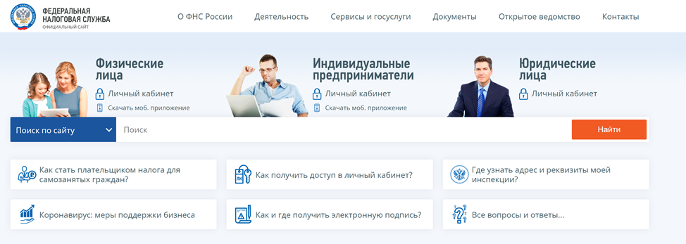 Сервисы сайта Федеральной налоговой службы