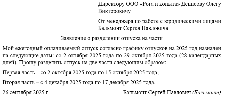 Разделение отпуска на части: допускается ли по ТК РФ, как разделить ежегодный оплачиваемый отдых, образец заявления и приказа