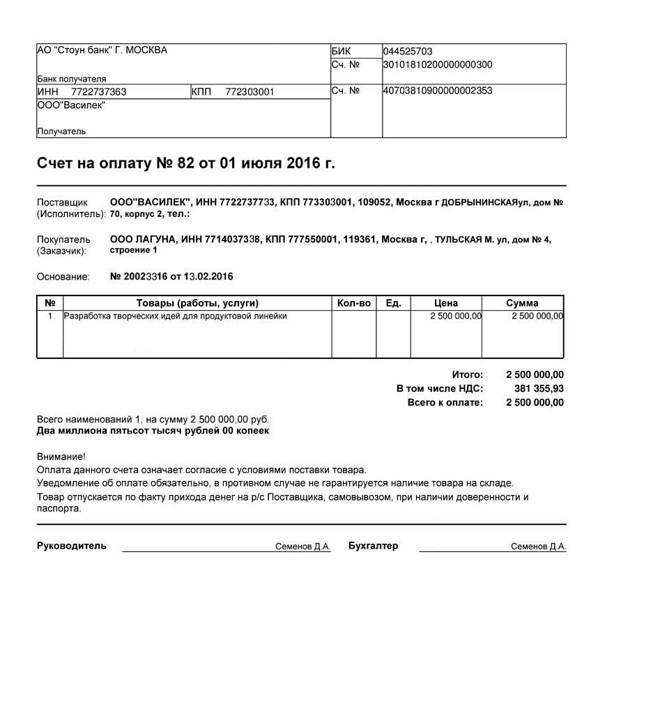 1. Счет на оплату должен содержать все обязательные реквизиты, позволяющие идентифицировать стороны документооборота, причину оформления документа и его сумму: