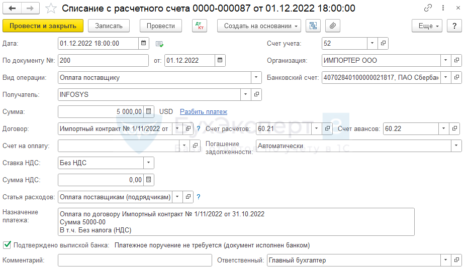 - Счет расчетов — 60.21 «Расчеты с поставщиками и подрядчиками (в валюте)»;