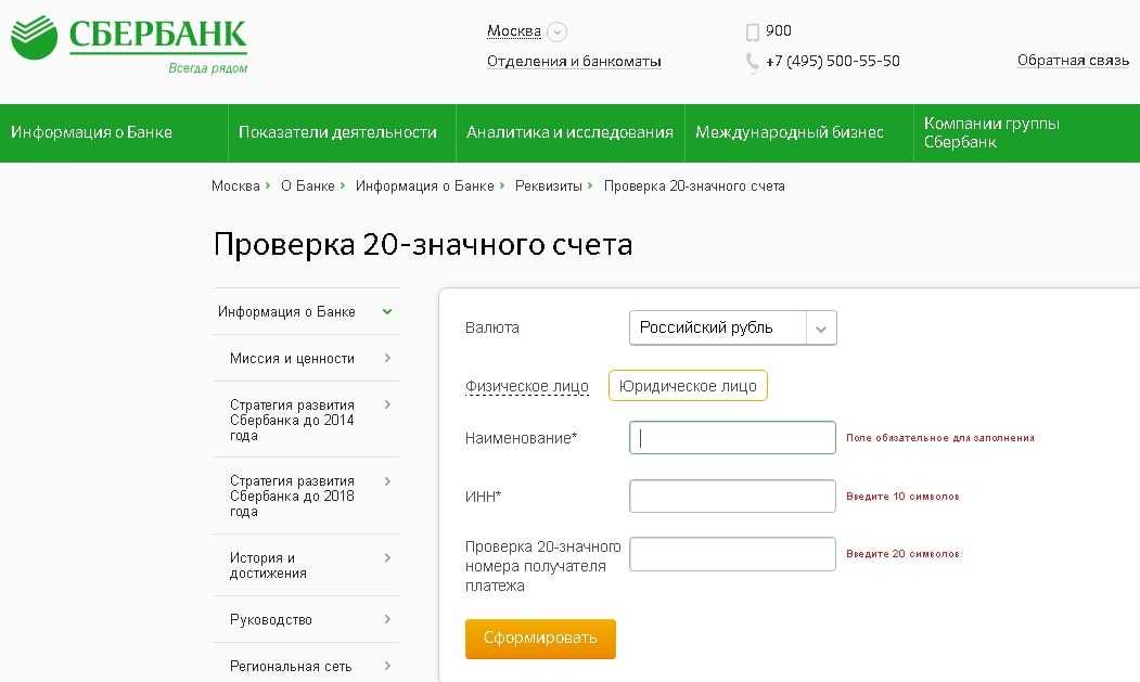 Для проверки расчетного счета в Сбербанке имеется онлайн сервис, где введя название организации и ее ИНН, можно получить искомую информаию.