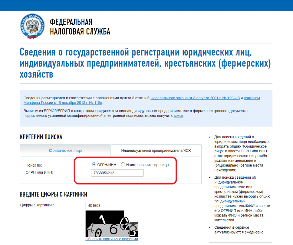 - любую информацию относительно компании (достаточно будет только ИНН).