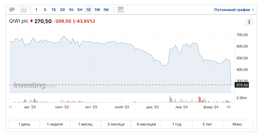 Падение расписок QIWI. И это при том, что банк является лишь частью компании, а не весь ее бизнес