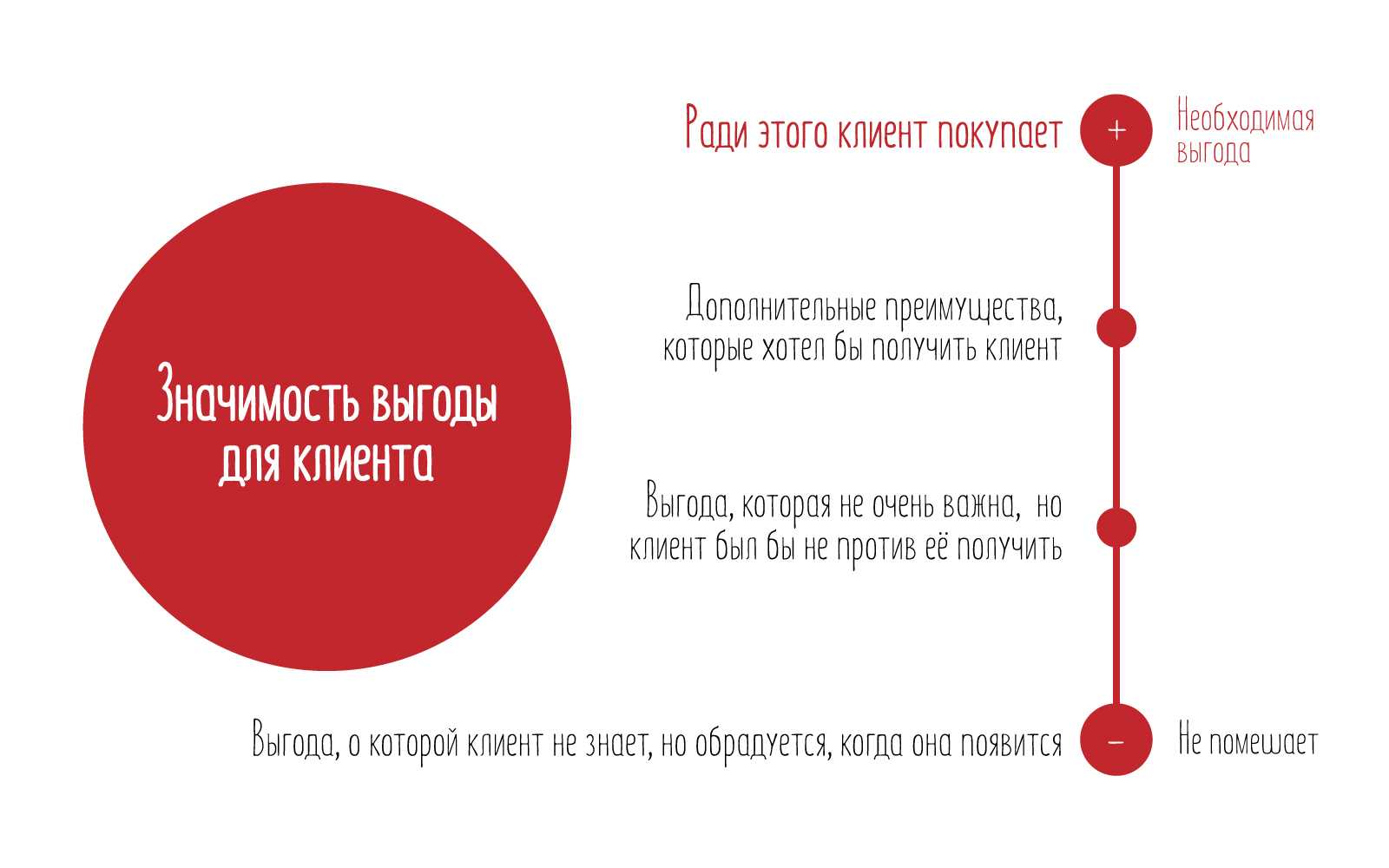 ВАЖНО!Клиент хочет услышать от Вас именно о тех качествах вашего товара или услуги, которые помогут ему достичь своей цели
