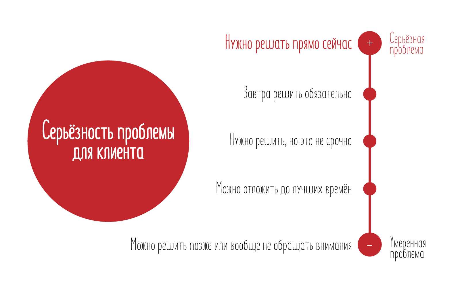 Если задачи клиентов бывают важными или маловажными, то проблемы могут быть серьёзными или умеренными.