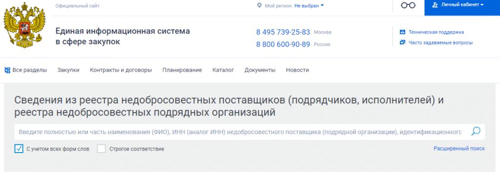 Чтобы найти реестр недобросовестных поставщиков на сайте самой ЕИС, необходимо: