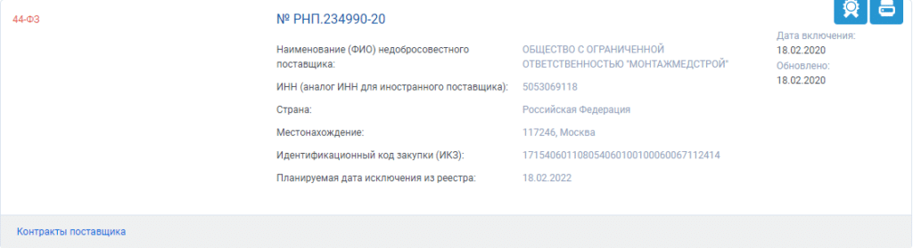 Просматривая РНП, вы можете узнать следующую полезную информацию о внесённом в него субъекте: