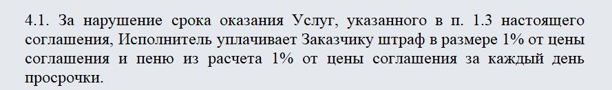 - штрафные санкции за некачественное или несвоевременное выполнение услуги;