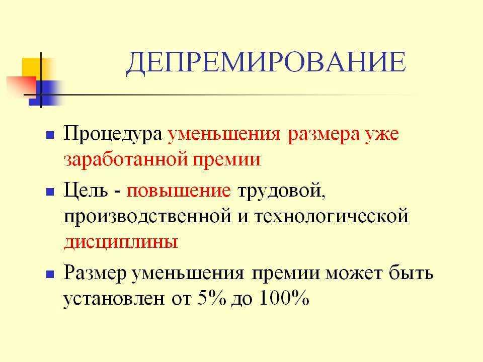 Что такое депремирование и в чем его особенности?