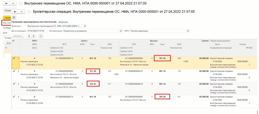 010400000 «Амортизация», 040110172 «Доходы от операций с активами»
