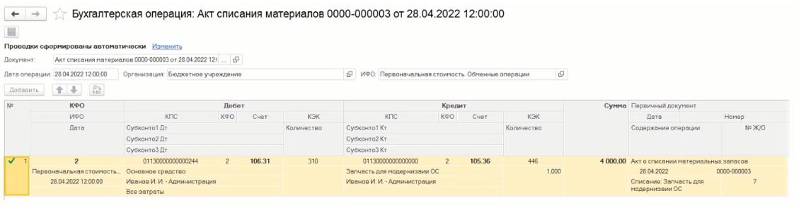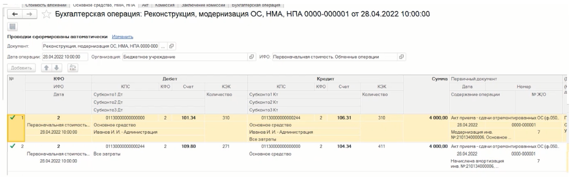 | Проводка | Описание проводки в учете основных средств |
