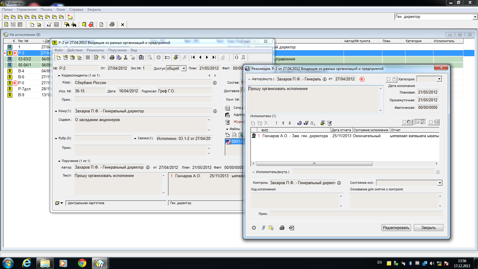 Если в компанию поступает входящий документ, он также регистрируется в системе. Далее определяется перечень лиц, которые будут работать с документом