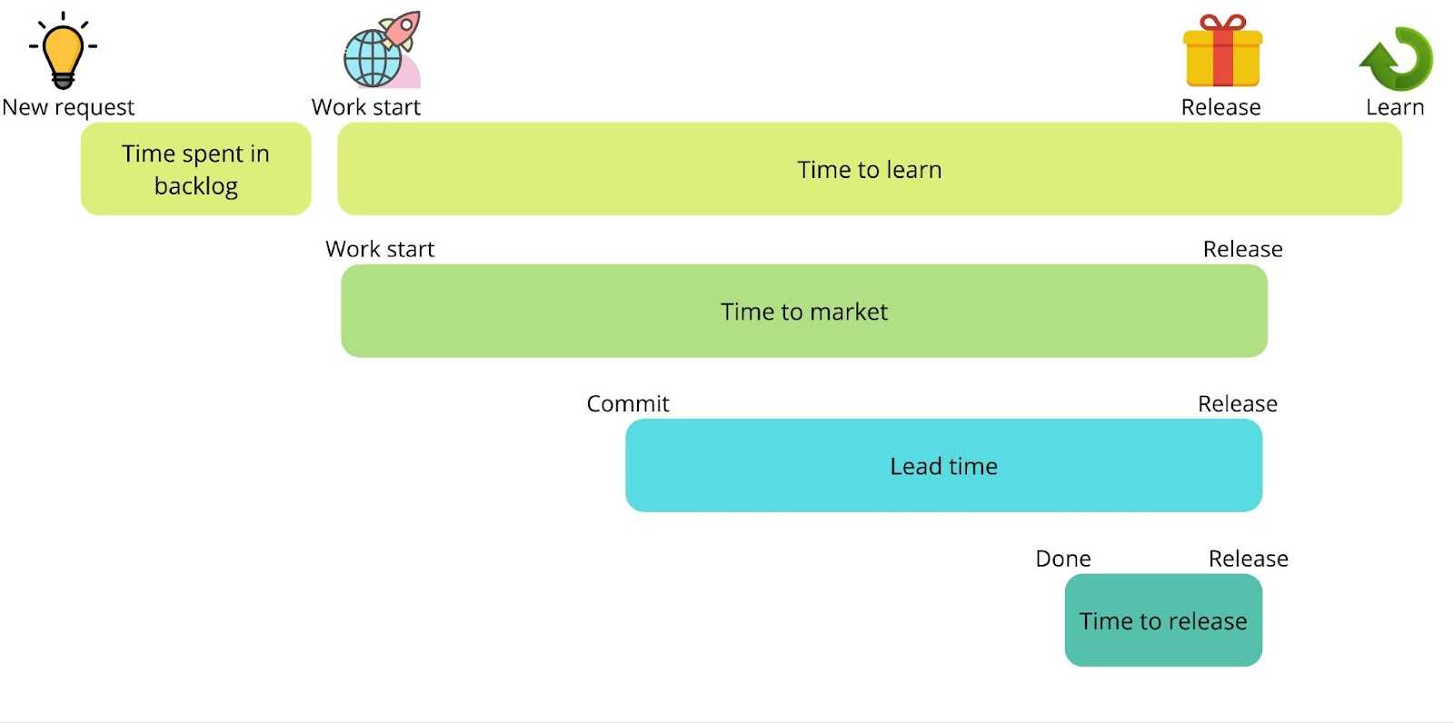 Картинка иллюстрирующая схематично метрики, включая time to market: