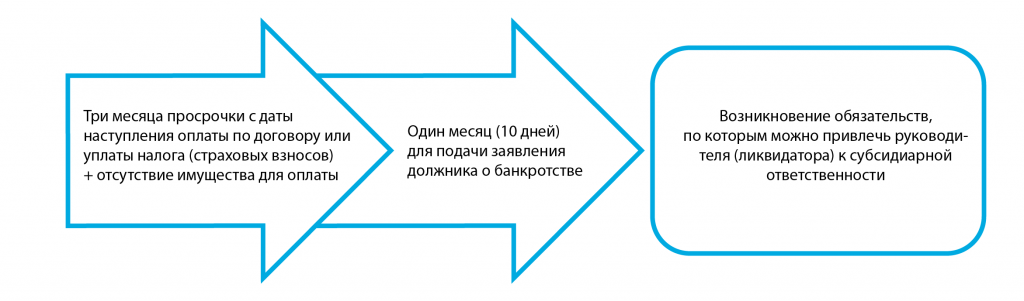 По закону руководитель, придя к выводу о неплатежеспособности компании, обязан в течение месяца обратиться в арбитражный суд с заявлением о признании ее банкротом. Обязанность введена с целью предотвращения более масштабных негативных последствий для кредиторов, чтобы компания не могла принимать на себя дальнейшие невыполнимые денежные обязательства.