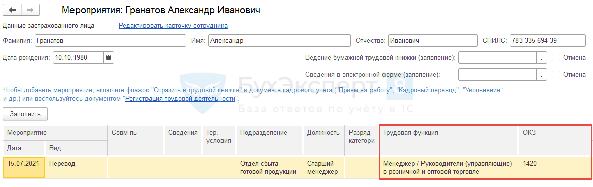 Где в ЗУП 3 указать трудовые функции для последующего заполнения СЗВ-ТД с 01.07.2021 года?
