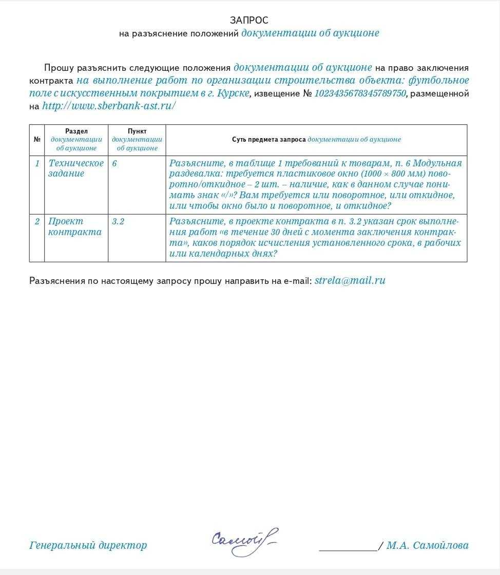 Запрос разъяснений по 44 фз образец