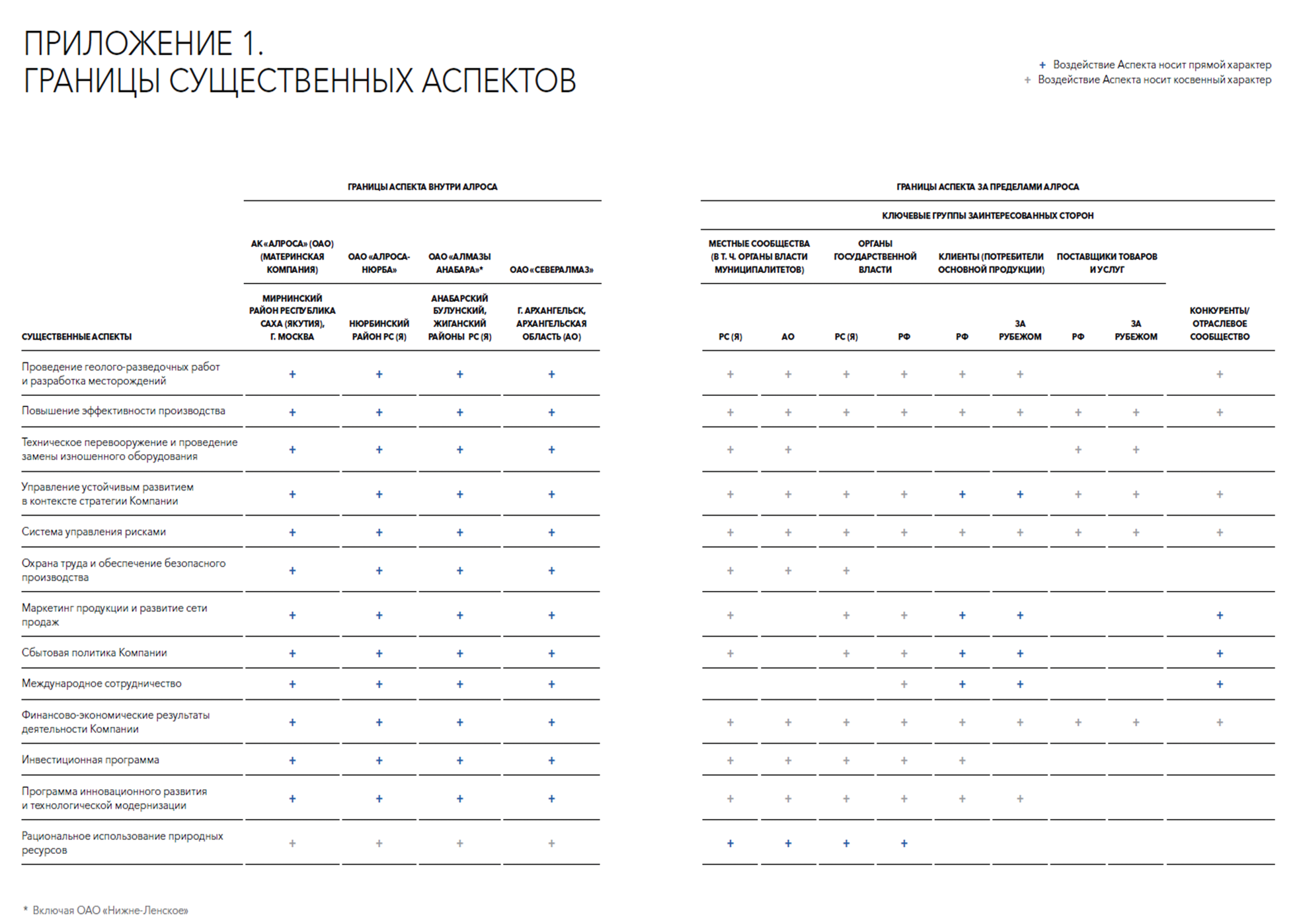1. Компания декларирует, что в результате проведенного анализа выбранные аспекты (темы) не существенны за пределами отчитывающейся компании.