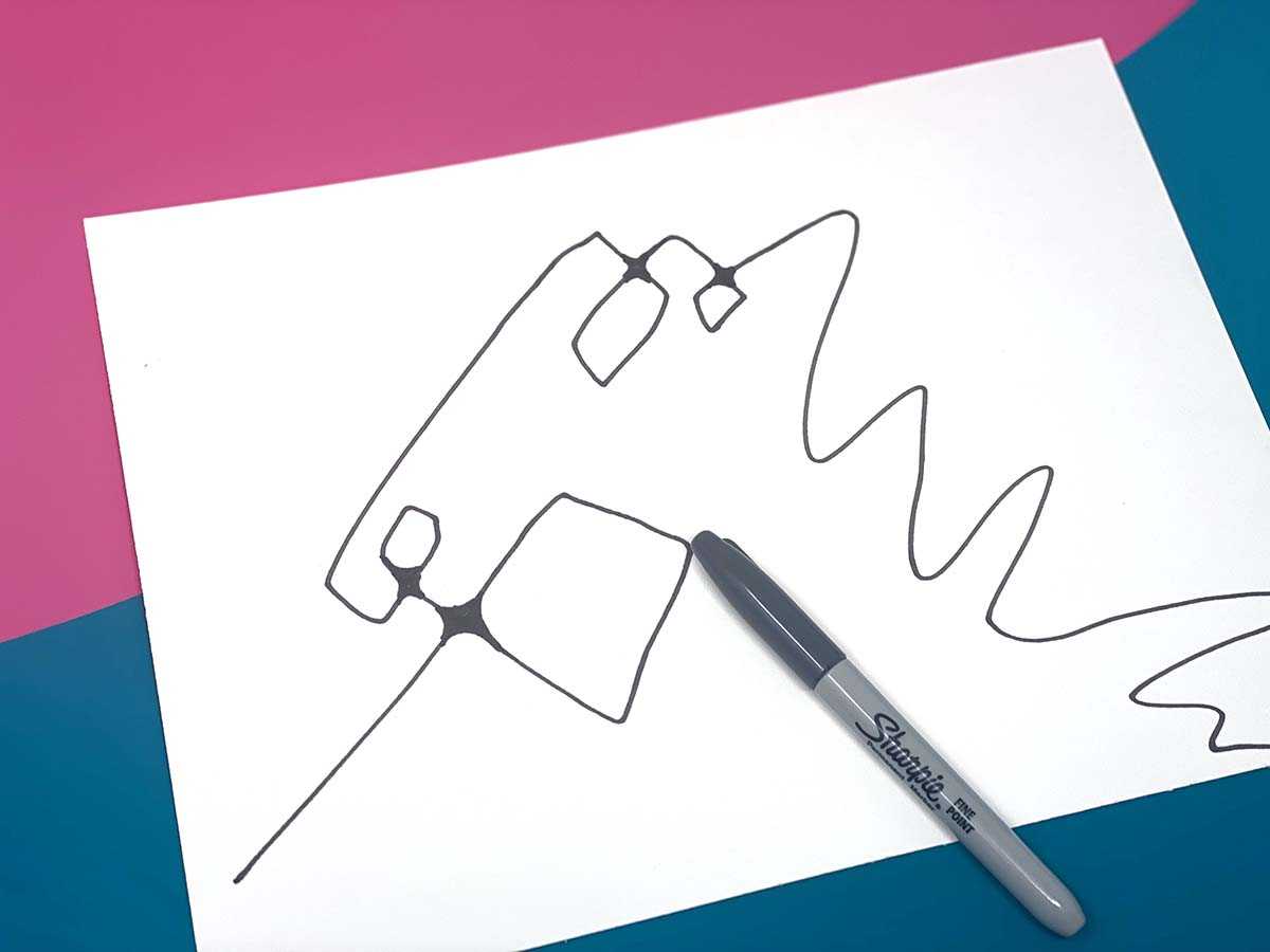 - Начертите на листе нейрографическую линию — ведите ее в течение 5-10 секунд.