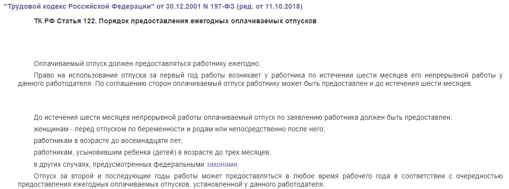 - На основании ст. 122 ТК РФ, некоторые работники претендуют на оплачиваемый отдых до истечения 6 месяцев непрерывной работы в организации. В таком случае обращаться к начальству уже нужно.