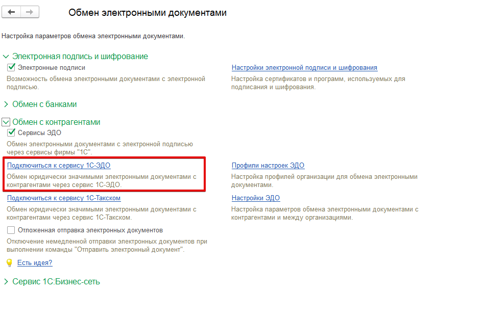 Как настроить сервис «1С-ЭДО (1С-Такском)»