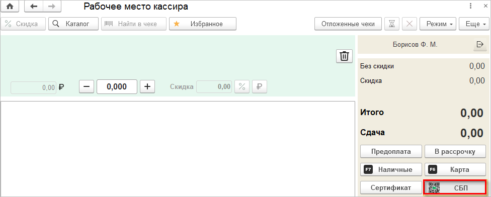 После проведения настроек в учетной программе на рабочем месте кассира также появится блок для работы с СБП.