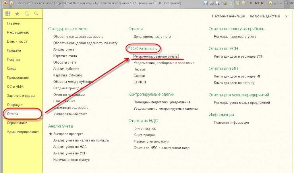 В меню «Отчеты» выберите пункт «Регламентированные отчеты».